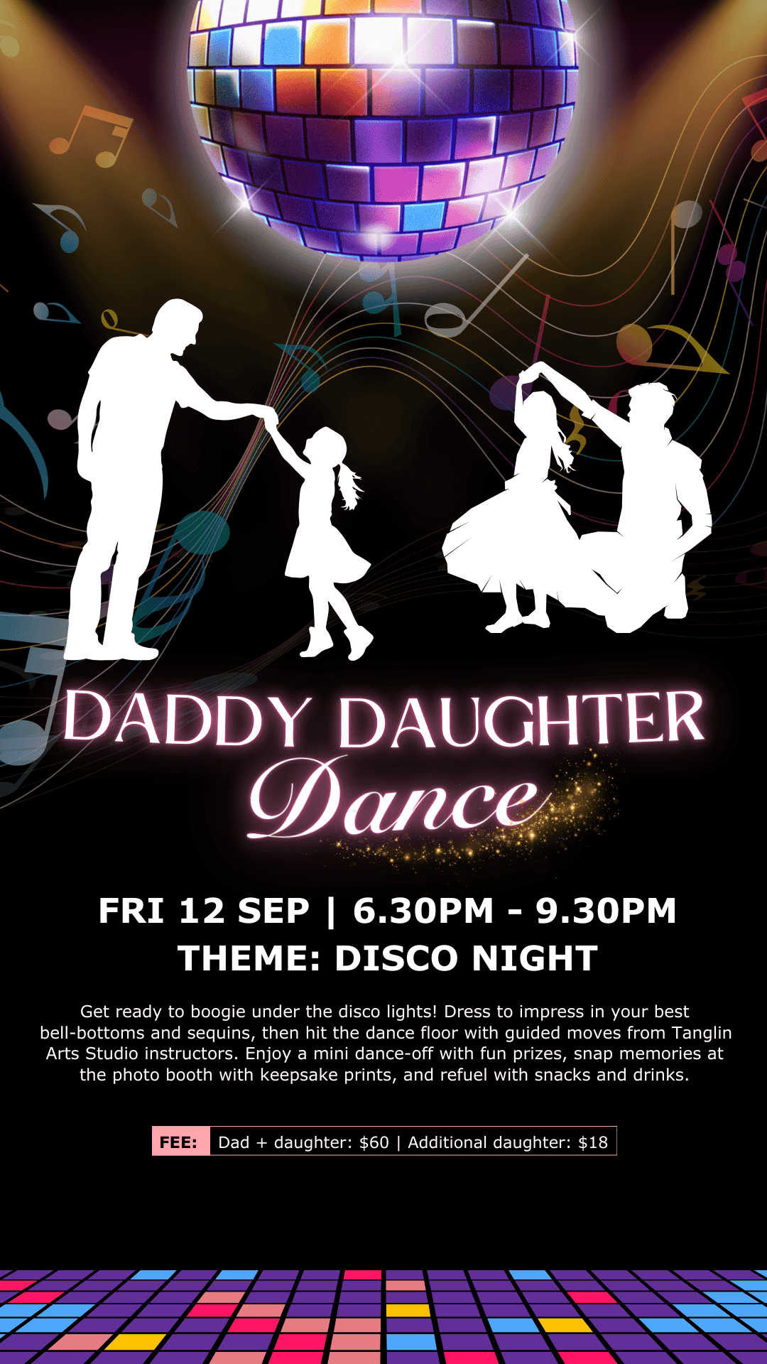 It’s time to shine, sparkle, and dance the night away! Put on your grooviest bell-bottoms and sequins, then hit the dance floor and learn disco moves with @tanglinartsstudiosg instructors.